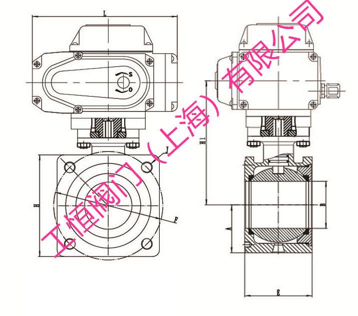 電動方球閥主要用鑄鐵、不銹鋼、聚四氟乙烯等加工而成。主要結構及連接尺寸如下圖及表