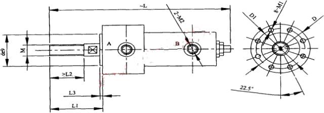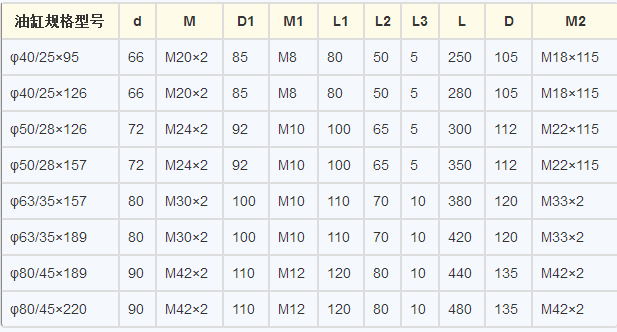 快速油缸(圖3)是通過(guò)齒輪齒條推動(dòng)蝶閥的執(zhí)行機(jī)構(gòu),為保證其運(yùn)行可靠,油缸密封選用了進(jìn)口的密封圈,并設(shè)置了液壓緩沖裝置以保護(hù)蝶閥,設(shè)計(jì)了節(jié)流裝置,按系統(tǒng)要求控制驅(qū)動(dòng)外界負(fù)載,直接安裝于齒輪齒條傳動(dòng)裝置上。為更好地與快關(guān)蝶閥連接,快速油缸也做了系列化設(shè)計(jì),見(jiàn)下表。