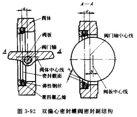 圖3-92所示為一種典型的雙偏心密封蝶閥密封副結構。該類蝶閥通常被稱為高性能蝶閥。
