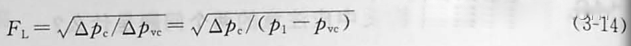 FL既可表示不同閥結構造成的壓力恢復,以修正不同閥結構造成的流量系數計算誤差,還要用于正常流動或阻塞流動的判別。因為FL定義公式(3-14)中的壓差△Pc就是該試驗閥產生阻塞流動的臨界壓差。這樣,當△P<△Pc時為正常流動,當△P≥△Pc時為阻塞流動。從式(3-14)中可解出液體介質的△Pc為