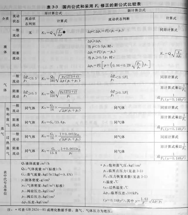 .蒸汽計算公式的修正同上。為了便于比較、應用,將采用FL修正的新公式和原公式匯總于表3-3中。