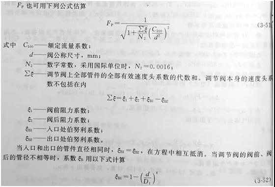 Fp是流過裝有附接管件調節閥的流量與不裝有附接管件時的流量之比?梢酝ㄟ^試驗確定Fp,其壓差值以不出現阻塞流為限。兩種安裝情況的流量均在不產生阻塞流的同一試驗條件下測得。