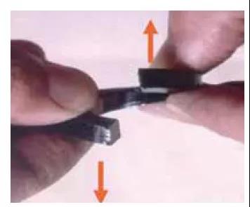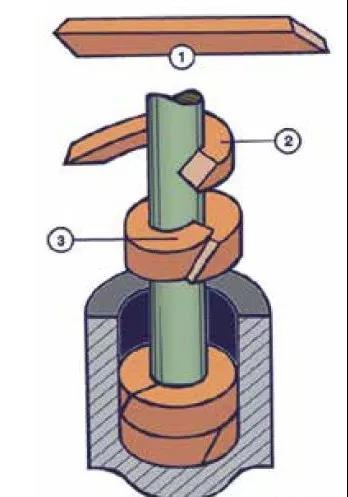 填料函同樣也要確保清潔無雜質和油脂。將個盤根環放入填料函,留意接口的位置,應當首先將接口部位塞入填料函,然后再塞入盤根環的其余部分。如果是柔性石墨模壓盤根環,應當將每個環都拉伸成螺旋狀后(圖5)再安裝到位,以避免盤根環損傷。每次安裝一枚盤根環,確保其已經在填料函內壓緊并坐實后,方可安裝下一枚。如果壓蓋隨動件的長度不足以到達填料函底部,則安裝盤根環時需要臨時工具或加長環輔助。