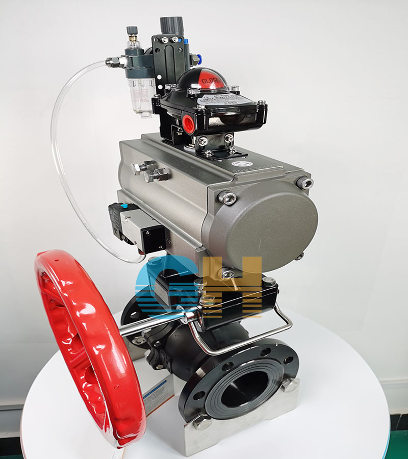 4、如果氣動管路球閥采取氣動、電動等執行器時,按說明書完成氣源、電源的安裝。