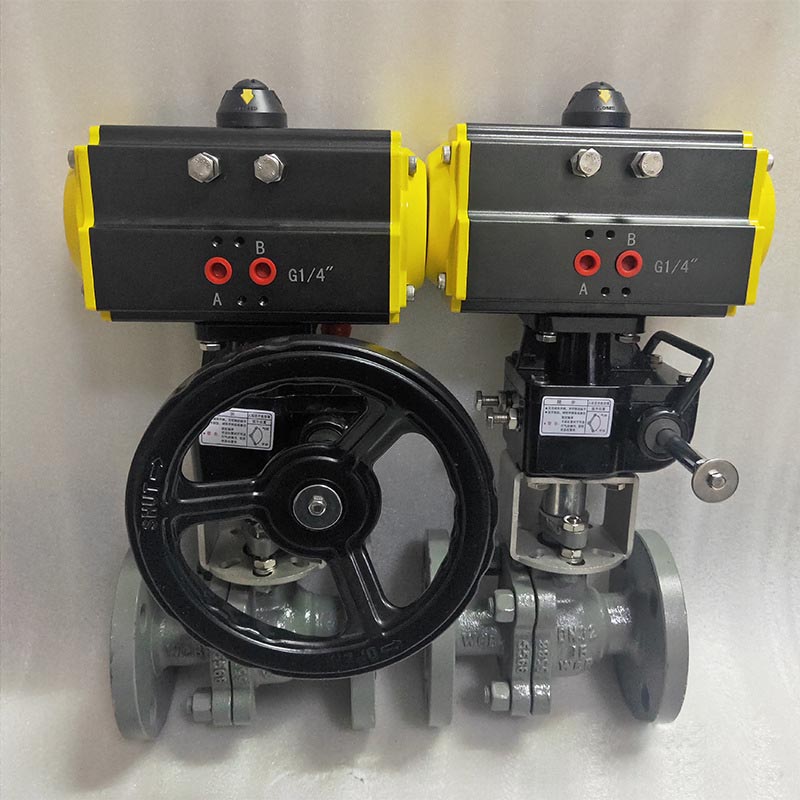 系列GT型氣動(dòng)執(zhí)行器,有雙作用式和單作用式(彈簧復(fù)位),齒輪齒條傳動(dòng),可靠;大口徑閥門采用系列AW型氣動(dòng)執(zhí)行器拔叉式傳動(dòng),結(jié)構(gòu)合理,輸出扭矩大,有雙作用式和單作用式。