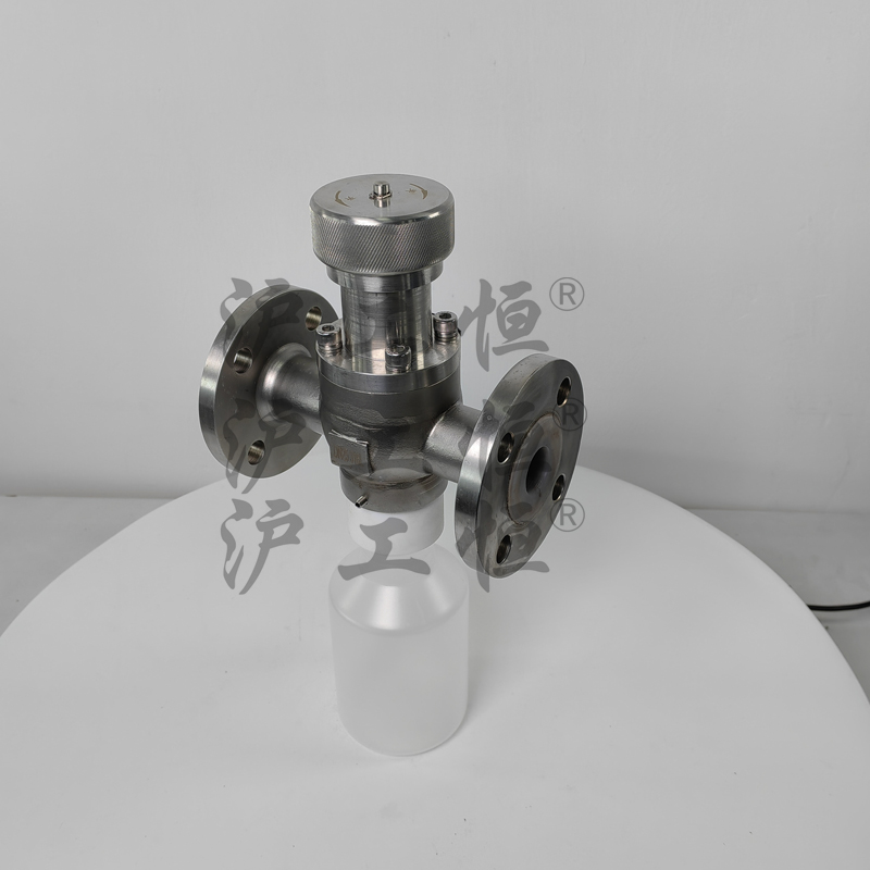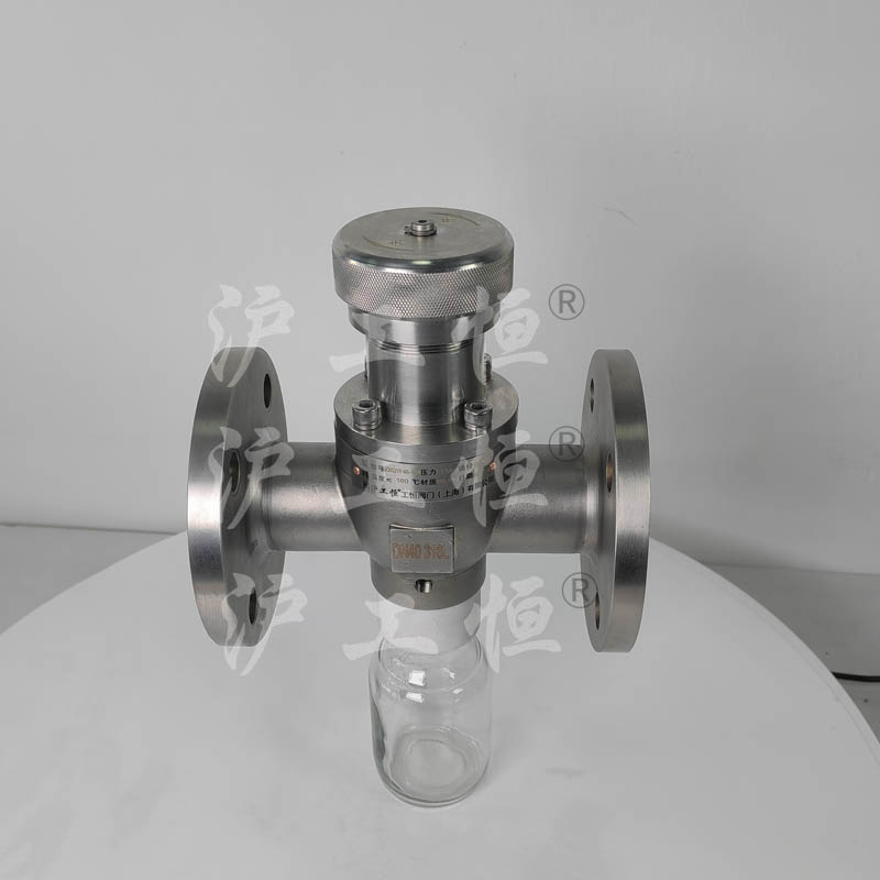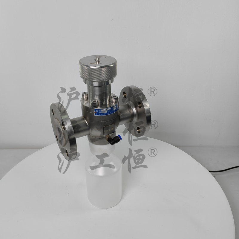 GHZSQYF46襯氟取樣閥解決了現有取樣閥的復雜結構,保溫帶吹掃口取樣閥主要有閥體、保溫殼、閥芯、閥桿、閥座、取樣瓶組成,取樣瓶為可拆卸設計,試樣進入取樣瓶內,可將取樣瓶密封,避免污染試樣,流道無流阻設計,不影響流量,閥體保溫可接入蒸汽或導熱油保溫,可避免介質因低溫凝固,閥桿通過手輪、電動執行機構、氣動執行機構旋轉帶動閥桿及閥芯,閥芯上下提拉,可精確控制流量,實現試樣進入取樣瓶內,取樣瓶可選透明和避光兩種,本取樣閥廣泛應用在制藥、化工、食品行業。