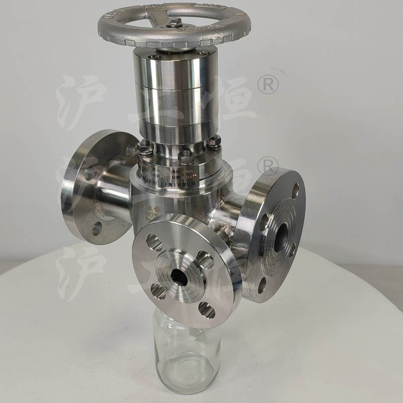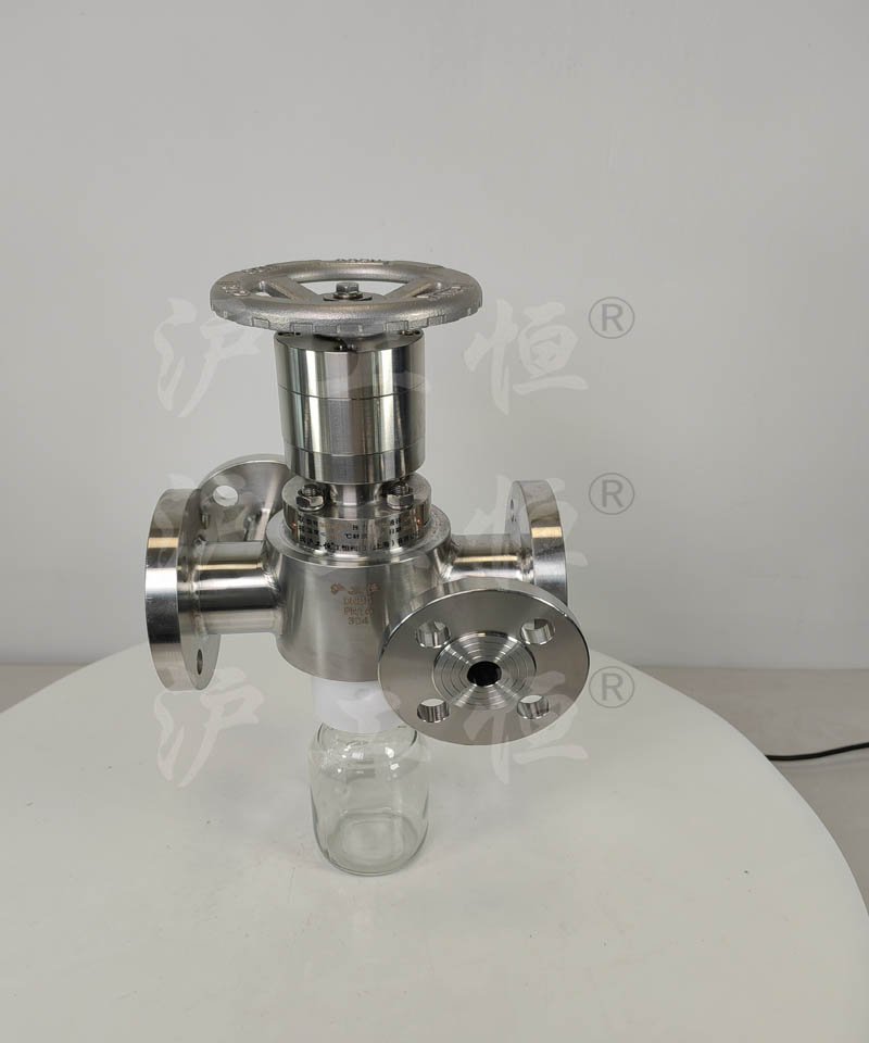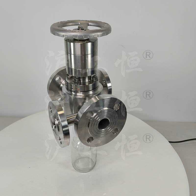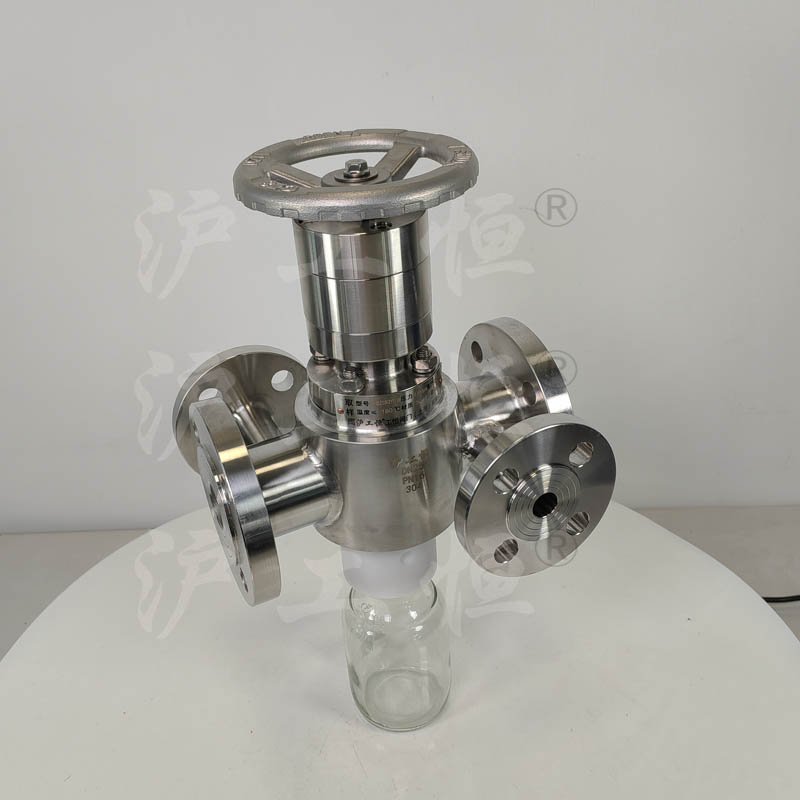GHSZZSQYF-16豎直裝在線取樣閥用于豎直管線在線取樣,取樣介質真實, GHSZZSQYF-16豎直裝在線取樣閥主要有閥體、閥芯、閥桿、閥座、排氣口,豎直裝取樣接頭、取樣瓶組成,取樣瓶為可拆卸設計,試樣進入取樣瓶內,配套的瓶蓋可將取樣瓶密封,避免污染試樣,取樣閥流道無滯留、無流阻設計,不影響流量,閥桿通過手輪旋轉帶動閥桿及閥芯,閥芯上下提拉,可精確控制流量,精確控制取樣量,使試樣進入取樣瓶內,取樣瓶可選透明和避光兩種,本取樣閥廣泛應用在制藥、化工、食品行業。
