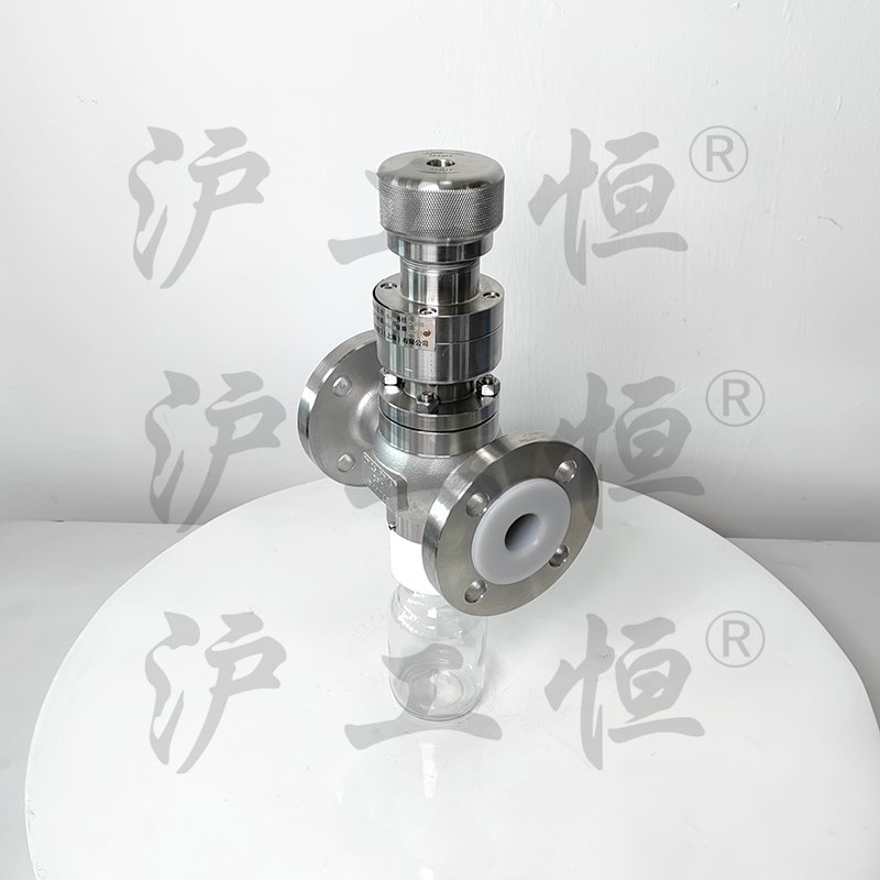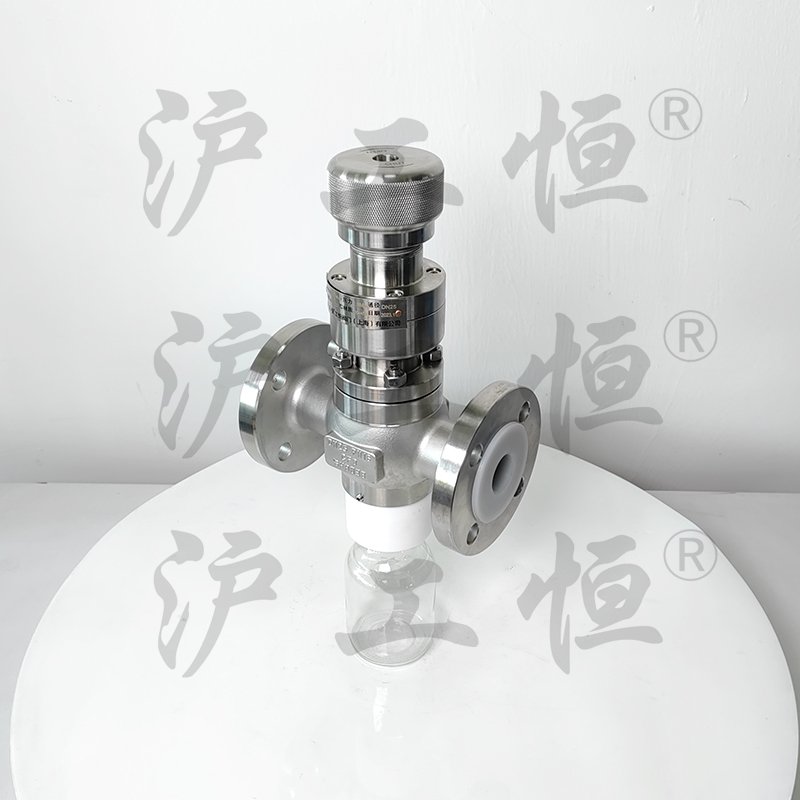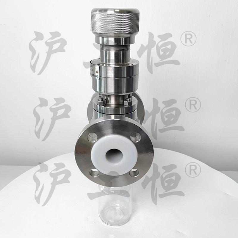 GHZSQYF46-16P不銹鋼襯氟取樣閥,GHZSQYF46-16P不銹鋼襯氟取樣閥與介質接觸部份全襯氟,可用在腐蝕工況上,內襯材質有F40、F46、PTFE、PFA,高溫工況可采用內襯PFA,GHZSQYF46-16P不銹鋼襯氟取樣閥主要有襯氟閥體、襯氟閥芯、襯氟閥蓋、襯氟閥桿、襯氟閥座、取樣瓶組成,取樣瓶為可拆卸設計,試樣進入取樣瓶內,配套的瓶蓋可將取樣瓶密封,避免污染試樣,取樣閥流道無滯留、無流阻設計,不影響流量,閥桿通過手輪旋轉帶動閥桿及閥芯,閥芯上下提拉,可精確控制流量,精確控制取樣量,使試樣進入取樣瓶內,取樣瓶可選透明和避光兩種,本取樣閥廣泛應用在制藥、化工、食品行業。