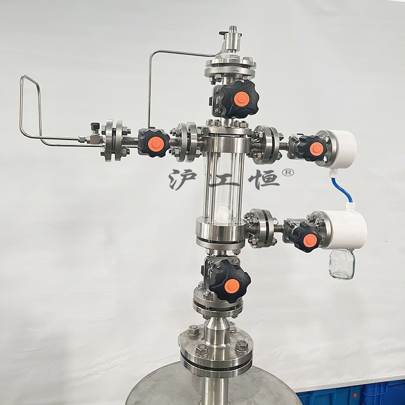 概述:滬工恒牌反應釜在線取樣裝置采樣設計利用真空負壓吸取罐內介質,氮氣反吹多余介質,可以對腐蝕性或者有毒有害介質進行安全、封閉式、可靠無污染的取樣,并且取樣過程中反應釜無需終止反應。可以根據客戶所取樣介質和工況的不同,選擇不銹鋼或者鋼襯四氟/襯PFA,可以適用于滲透性強的溶劑介質。