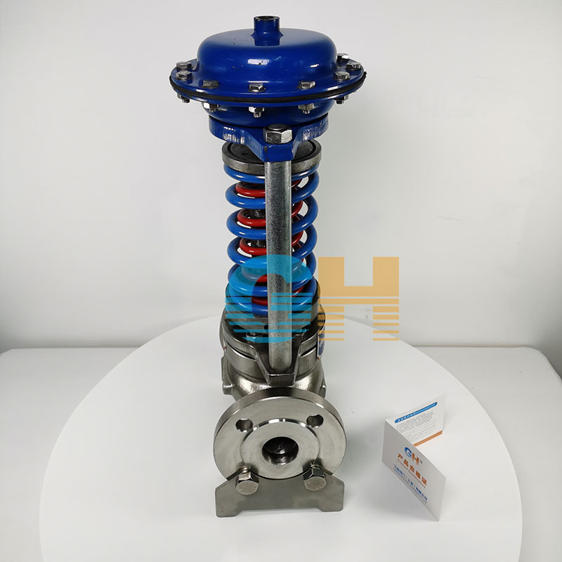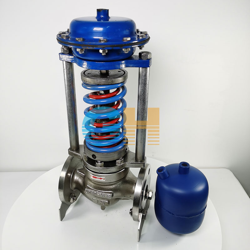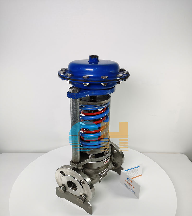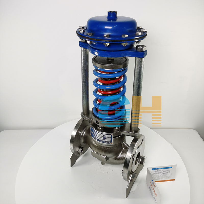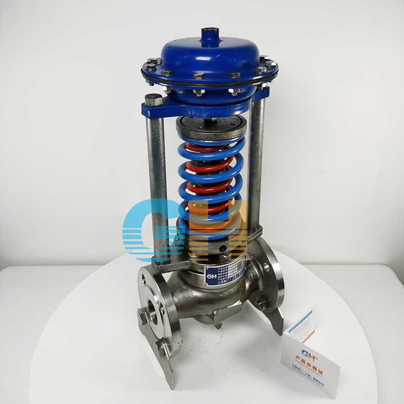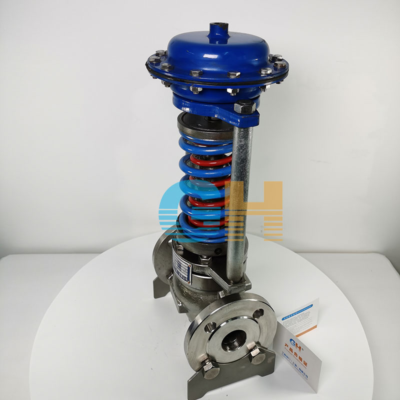 如閥后壓力增加,作用于膜片上的力增加,壓縮彈簧,帶動閥芯,使閥門開度減少,直至閥后壓力下降至設定值為止。同理,如閥后壓力降低,作用在膜片上的力減小,由于彈簧的反作用力,帶動閥芯,使閥門的開度加大,直至閥后壓力上升至設定值為止。
