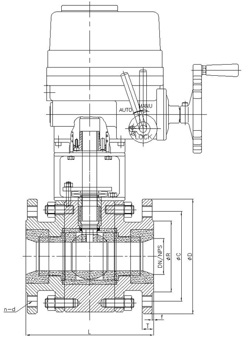 脫硫專用電動V型陶瓷調節球閥-配IQT電動執行機構