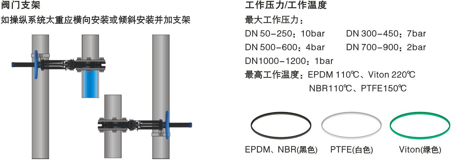 | 介質溫度 | 軟密封:≤100℃ 金屬密封:視閥體材質而定 | ||||